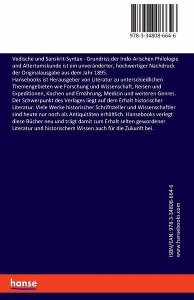 Vedische und Sanskrit-Syntax - Grundriss der Indo-Arischen Philologie und Altertumskunde ist ein unveränderter, hochwertiger Nachdruck der Originalausgabe aus dem Jahr 1895.Hansebooks ist Herausgeber von Literatur zu unterschiedlichen Themengebieten wie Forschung und Wissenschaft, Reisen und Expeditionen, Kochen und Ernährung, Medizin und weiteren Genres. Der Schwerpunkt des Verlages liegt auf dem Erhalt historischer Literatur. Viele Werke historischer Schriftsteller und Wissenschaftler sind heute nur noch als Antiquitäten erhältlich. Hansebooks verlegt diese Bücher neu und trägt damit zum Erhalt selten gewordener Literatur und historischem Wissen auch für die Zukunft bei.