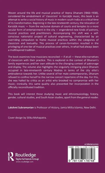 This book looks at the life of Veena Dhanammal (1866-1938), considered the embodiment of 'classicism' in Karnatik music. It locates her art within the cultural, social and intellectual milieu she inhabited, allowing readers to track the changing musical landscape of southern India