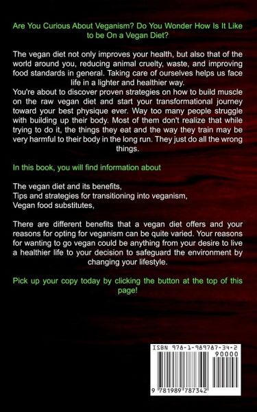 Are You Curious About Veganism? Do You Wonder How Is It Like to be On a Vegan Diet? The vegan diet not only improves your health, but also that of the world around you, reducing animal cruelty, waste, and improving food standards in general. Taking care of ourselves helps us face life in a lighter and healthier way. You're about to discover proven strategies on how to build muscle on the raw vegan diet and start your transformational journey toward your best physique ever. Way too many people struggle with building up their body. Most of them don't realize that while trying to do it, the things they eat and the way they train may be very harmful to their body in the long run. They just do all the wrong things. In this book, you will find information about The vegan diet and its benefits, Tips and strategies for transitioning into veganism, Vegan food substitutes, There are different benefits that a vegan diet offers and your reasons for opting for veganism can be quite varied. Your reasons for wanting to go vegan could be anything from your desire to live a healthier life to your decision to safeguard the environment by changing your lifestyle. Pick up your copy today by clicking the button at the top of this page!