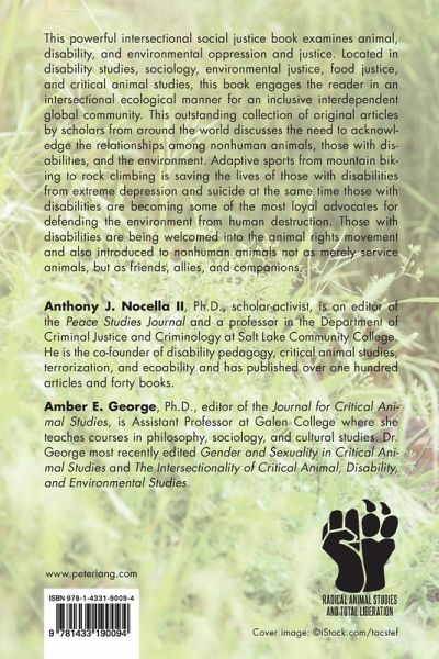 This powerful intersectional social justice book examines animal, disability, and environmental oppression and justice. Located in disability studies, sociology, environmental justice, food justice, and critical animal studies, this book engages the reader in an intersectional ecological manner for an inclusive interdependent global community. This outstanding collection of original articles by scholars from around the world discusses the need to acknowledge the relationships among nonhuman animals, those with disabilities, and the environment. Adaptive sports from mountain biking to rock climbing is saving the lives of those with disabilities from extreme depression and suicide at the same time those with disabilities are becoming some of the most loyal advocates for defending the environment from human destruction. Those with disabilities are being welcomed into the animal rights movement and also introduced to nonhuman animals not as merely service animals, but as friends, allies, and companions.