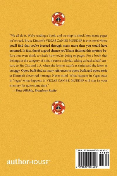 It's February of 1976. Harry, former actor agent, then literary agent, then private detective, is once again happily retired-going to the office daily, reading the trades, lunching at the Hamburger Hamlet, sparring with his secretary Bernice, and listening to his beloved opera recordings-until he gets a call from Las Vegas lounge singer Buddy DeMarco. A decade earlier, one of Harry's writer clients had written Buddy's jokes and patter which Buddy is still doing at the Las Vegas Hilton. Buddy is receiving threatening notes, each more ominous than the last, and he implores Harry to take the case. Harry hates Vegas and has no intention of taking this or any other case there, but he goes as a favor to Buddy, fully intending to say no. Before returning home, however, Harry in turn gets a threatening note, warning him not to get involved. Of course, Harry takes the case. What follows is a colorful, often hilarious, frequently baffling, mystery as Harry goes down the rabbit hole list of suspects, each of them someone Buddy has seriously mistreated at one time or another. As the notes become more threatening, they know the clock is ticking before whoever is behind them follows through on the threats. Taking place in Los Angeles and Las Vegas, Vegas Can Be Murder features guest appearances by the likes of Liberace and Frank Sinatra, Bernice running amok in the casino, and Harry remaining doggedly on the case.