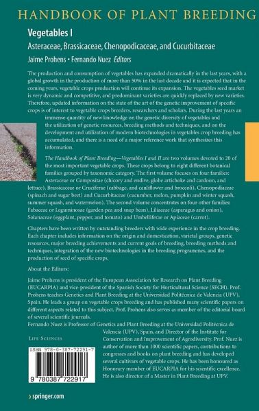 The production and consumption of vegetables has expanded dramatically in the last years, with a global growth in the production of more than 50% in the last decade, a rate of increase that is much higher than for other plant commodities. Vegetables constitute an important part of a varied and healthy diet and provide significant amounts of vitamins, antioxidants and other substances that prevent diseases and contribute to an improvement in the quality of life. In consequence, it is expected that in the coming years, vegetable crops production will continue its expansion. Improved varieties have had a main role in the increases in yield and quality of vegetable crops. In this respect, the vegetables seed market is very dynamic and competitive, and predominant varieties are quickly replaced by new varieties. Therefore, updated information on the state of the art of the genetic improvement of specific crops is of interest to vegetable crops breeders, researchers and scholars. During the last years an immense quantity of new knowledge on the genetic diversity of vegetables and the utilization of genetic resources, breeding methods and techniques, and on the development and utilization of modern biotechnologies in vegetables crop breeding has accumulated, and there is a need of a major reference work that synthesizes this information. This is our objective.