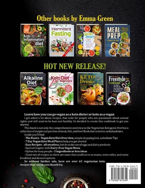 Learn how you can go vegan as a keto dieter or keto as a vegan! I get asked a lot about recipes, that suits for people who are passionate about animal rights and still want to be lean and healthy. So decided to create this cookbook to get you started. This book is not only the comprehensive overview to the Vegetarian Ketogenic Diet but a collection of simple recipes free of meat, fish, and fowl flesh that restricts carbohydrates. Inside you’ll find: The Basics - Vegan Keto Diet Overview, simple shopping List, substitute Tips 7 Day Vegan Keto Meal Plan to help you get started Easy Recipes - all meatless, but do make use of eggs and dairy products Special Chapter with Dairy-Free Vegan Menu Option for busy people - 5 ingredients or less ideas Good mix of recipes so there are some that could serve as mains, some sides, and some breakfast and dessert options. So without further ado, here are over 65 vegetarian keto recipes that I think you should try. Get Started Now for a Healthier Lifestyle!