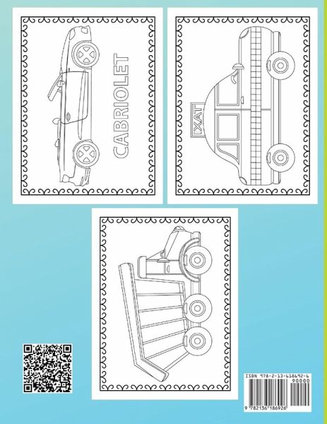 Lots of different and awesome vehicles to discover in this coloring book! A great coloring experience for preschool children from 3 years of age.This coloring book for preschoolers contains many different vehicle illustrations for boys and girls from 3 years of age. Specifically designed for kids ages 3-5 to ensure the best coloring and learning experience! ¿¿ GREAT FOLLOW-UP TO OUR TODDLER SERIES: Slightly more details and slightly thinner lines ¿¿ 30 BIG VEHICLE ILLUSTRATIONS: Digger, Tractor, Fire Truck, Submarine and many more! ¿¿ LARGE DRAWINGS & SIMPLE SHAPES ¿¿ THICK PAPER AND QUALITY PRINT ¿¿ ONE-SIDED PRINT: Following pages are not affected by color ¿¿ DESIGNED FOR KIDS AGES 3-5
