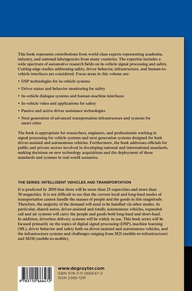 This book presents works from world-class experts from academia, industry, and national agencies representing countries from across the world focused on automotive fields for in-vehicle signal processing and safety. These include cutting-edge studies on safety, driver behavior, infrastructure, and human-to-vehicle interfaces. Vehicle Systems, Driver Modeling and Safety is appropriate for researchers, engineers, and professionals working in signal processing for vehicle systems, next generation system design from driver-assisted through fully autonomous vehicles.