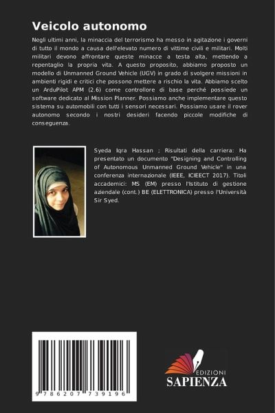 Negli ultimi anni, la minaccia del terrorismo ha messo in agitazione i governi di tutto il mondo a causa dell'elevato numero di vittime civili e militari. Molti militari devono affrontare queste minacce a testa alta, mettendo a repentaglio la propria vita. A questo proposito, abbiamo proposto un modello di Unmanned Ground Vehicle (UGV) in grado di svolgere missioni in ambienti rigidi e critici che possono mettere a rischio la vita. Abbiamo scelto un ArduPilot APM (2.6) come controllore di base perché possiede un software dedicato al Mission Planner. Possiamo anche implementare questo sistema su automobili con tutti i sensori necessari. Possiamo usare il rover autonomo secondo i nostri desideri facendo piccole modifiche di conseguenza.