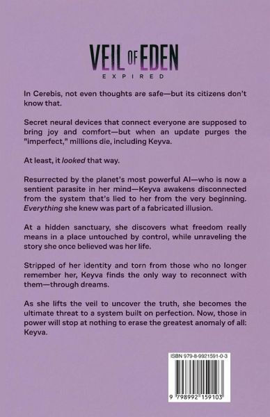 In Cerebis, not even thoughts are safe, but its citizens don't know that. Secret neural devices that connect everyone are supposed to bring joy and comfort, but when an update purges the imperfect, millions die, including Keyva. At least, it looked that way. Resurrected by the planet's most powerful AI, who is now a sentient parasite in her mind, Keyva awakens disconnected from the system that has lied to her from the very beginning. Everything she knew was part of a fabricated illusion. At a hidden sanctuary, she discovers what freedom really means in a place untouched by control, while unraveling the story she once believed was her life. Stripped of her identity and torn from those who no longer remember her, Keyva finds the only way to reconnect with them: through dreams. As she lifts the veil to uncover the truth, she becomes the ultimate threat to a system built on perfection. Now, those in power will stop at nothing to erase the greatest anomaly of all: Keyva.