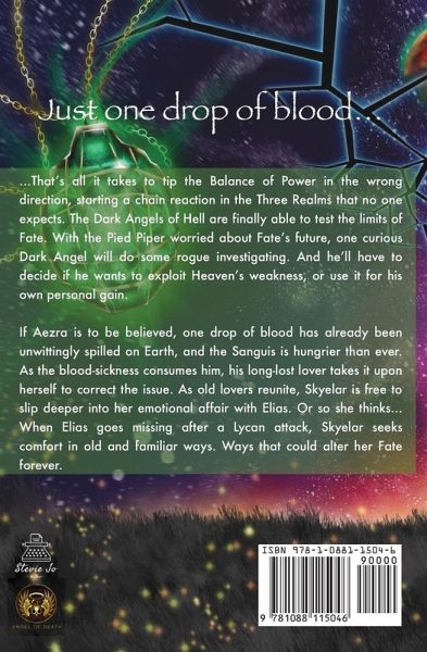 Third in the Angel of Death series. Just one drop of blood...That's all it takes to tip the Balance of Power in the wrong direction, starting a chain reaction in the Three Realms that no one expects. The Dark Angels of Hell are finally able to test the limits of Fate. With the Pied Piper worried about Fate's future, one curious Dark Angel will do some rogue investigating. And he'll have to decide if he wants to exploit Heaven's weakness, or use it for his own personal gain. If Aezra is to be believed, one drop of blood has already been unwittingly spilled on Earth, and the Sanguis is hungrier than ever. As the blood-sickness consumes him, his long-lost lover takes it upon herself to correct the issue. As old lovers reunite, Skyelar is free to slip deeper into her emotional affair with Elias. Or so she thinks...When Elias goes missing after a Lycan attack, Skyelar seeks comfort in old and familiar ways. Ways that could alter her Fate forever.