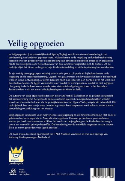 In Veilig opgroeien (oorspronkelijke titel Signs of Safety), wordt een nieuwe benadering in de bescherming van kinderen gepresenteerd. Hulpverleners in de jeugdzorg en kinderbescherming kunnen hiermee potentieel risicovolle situaties beoordelen en vinden hierin praktische hands-on strategieën voor het opbouwen van een samenwerkingrelatie met de ouders. Uit de praktijk blijkt dat dit op de lange termijn kindermishandeling en uit huis plaatsing kan voorkomen.Er zijn weinig beroepsgroepen waarbij emotie zo'n grote rol speelt als bij hulpverleners in de jeugdzorg en de kinderbescherming. Logisch; het gaat immers om kwetsbare kinderen die bedreigd worden in hun ontwikkeling, of erger. Daarom heeft ook iedereen een oordeel over het werk van deze hulpverleners. Zij liggen vaak onder vuur: omdat ze wél ingrijpen of omdat ze níet ingrijpen. Het gevolg is dat hulpverleners steeds vaker risicomijdend gedrag vertonen - het beruchte Savanna-effect - dat tot meer uithuisplaatsingen van kinderen leidt.De auteurs van Veilig opgroeien bieden een beter alternatief. Zij hebben in de praktijk vastgesteld dat samenwerking met het gezin de beste resultaten oplevert. In negen hoofdstukken worden zowel het theoretische kader als de praktijkelementen van Signs of Safety uitgebreid behandeld. Dit praktijkboek laat zien hoe je deze benadering steeds kunt toepassen: van intake via onderzoek en beoordeling tot afsluiting van het dossier.