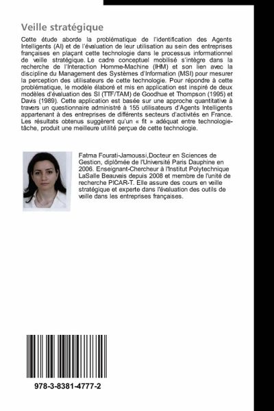 Cette étude aborde la problématique de l identification des Agents Intelligents (AI) et de l évaluation de leur utilisation au sein des entreprises françaises en plaçant cette technologie dans le processus informationnel de veille stratégique. Le cadre conceptuel mobilisé s intègre dans la recherche de l Interaction Homme-Machine (IHM) et son lien avec la discipline du Management des Systèmes d Information (MSI) pour mesurer la perception des utilisateurs de cette technologie. Pour répondre à cette problématique, le modèle élaboré et mis en application est inspiré de deux modèles d évaluation des SI (TTF/TAM) de Goodhue et Thompson (1995) et Davis (1989). Cette application est basée sur une approche quantitative à travers un questionnaire administré à 155 utilisateurs d Agents Intelligents appartenant à des entreprises de différents secteurs d activités en France. Les résultats obtenus suggèrent qu un " fit " adéquat entre technologie-tâche, produit une meilleure utilité perçue de cette technologie.