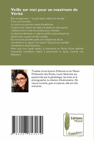 Être enseignante : '' Le plus beau métier du monde. '' Tout une vocation.Un parcours pourtant semé d'embûches.L'exercice du métier est déjà une épreuve, mais quand s'additionnent à cela les persécutions morales...La réponse demeure un silence parfois assourdissant etdestructeur, auquel on doit se plier.Est-il encore possible après tant d'épreuves de se raccrocher à un signe ? Un espoir ? Quand tout semble orchestré et tracé d'avance...Alors que tout paraît perdu, la résonance et l'écho d'une mélodie incessante consolent, aident à poursuivre la route, comme une libération.