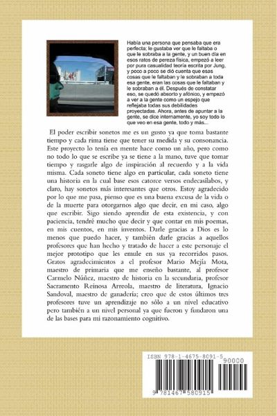Me di la oportunidad de escribir sonetos ya que era algo que tenia en mi mente, y de verdad que quería hacer algo interesante, algo con lo que me quedara contentamente contento. Este ha sido un trabajo bastante laborioso, pero me divertí mucho, y ahora tengo la fortuna de decir, tengo algo escrito y palpable. Estos sonetos hablan de todo, y aparte los veinte sonetos, también escribí dos reflecciones..