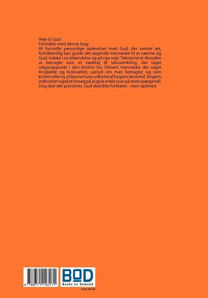 "Veje til Gud" er tiltænkt dig som søger kontakt til Gud. Teksterne er desuden at betragte som et værktøj til selvudvikling, der tager udgangspunkt i den kristne tro. Bogens indhold er også et forsøg på at give enkle svar på store spørgsmål. Bogens tekster er let læselig, og henvender sig til enhver, uanset om man betragter sig som kristen eller ej.