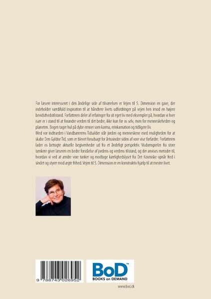 For læsere interesseret i den åndelige side af tilværelsen er Vejen til 5. Dimension en gave, der indeholder værdifuld inspiration til at håndtere livets udfordringer på vejen hen imod en højere bevidsthedstilstand. Forfatteren deler af erfaringer fra sit eget liv med eksempler på, hvordan vi hver især er i stand til at forandre verden til det bedre, ikke kun for os selv, men for menneskeheden og planeten. Bogen tager hul på dybe emner som karma, reinkarnation og tidligere liv. Med vor indtræden i Vandbærerens Tidsalder står jorden og menneskene med muligheden for at skabe Den Gyldne Tid, som er blevet forudsagt for årtusinder siden af vore vise forfædre. Forfatteren lader os betragte aktuelle begivenheder ud fra et åndeligt perspektiv. Visdomsperler fra store tænkere giver læseren en bedre forståelse af jordens og verdens tilstand, og der anvises metoder til, hvordan vi ved at ændre vore tanker og modtage kærlighedslyset fra Det Kosmiske opnår fred i sindet og styrer mod ægte frihed. Vejen til 5. Dimension er en konstruktiv hjælp til at mestre livet.