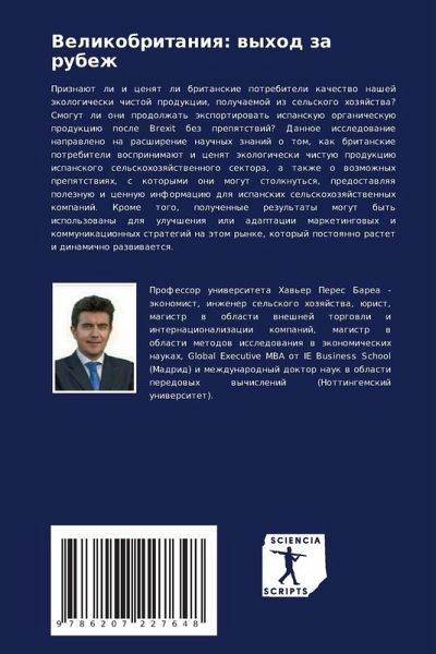 Priznaüt li i cenqt li britanskie potrebiteli kachestwo nashej äkologicheski chistoj produkcii, poluchaemoj iz sel'skogo hozqjstwa? Smogut li oni prodolzhat' äxportirowat' ispanskuü organicheskuü produkciü posle Brexit bez prepqtstwij? Dannoe issledowanie naprawleno na rasshirenie nauchnyh znanij o tom, kak britanskie potrebiteli wosprinimaüt i cenqt äkologicheski chistuü produkciü ispanskogo sel'skohozqjstwennogo sektora, a takzhe o wozmozhnyh prepqtstwiqh, s kotorymi oni mogut stolknut'sq, predostawlqq poleznuü i cennuü informaciü dlq ispanskih sel'skohozqjstwennyh kompanij. Krome togo, poluchennye rezul'taty mogut byt' ispol'zowany dlq uluchsheniq ili adaptacii marketingowyh i kommunikacionnyh strategij na ätom rynke, kotoryj postoqnno rastet i dinamichno razwiwaetsq.