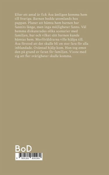 Efter ett antal år fick Åsa äntligen komma hem till Sverige. Barnen bodde utomlands hos pappan. Planer att hämta hem barnen har funnits länge, men inga möjligheter fanns. Väl hemma diskuterades olika scenarier med familjen, hur och vilket sätt barnen kunde hämtas hem. Morföräldrarna ville hjälpa till. Åsa förstod att det skulle bli en stor fara för alla inblandade. Oväntad hjälp kom. Hon tog emot den på grund av faran för familjen. Visste med sig att fler svårigheter skulle komma.
