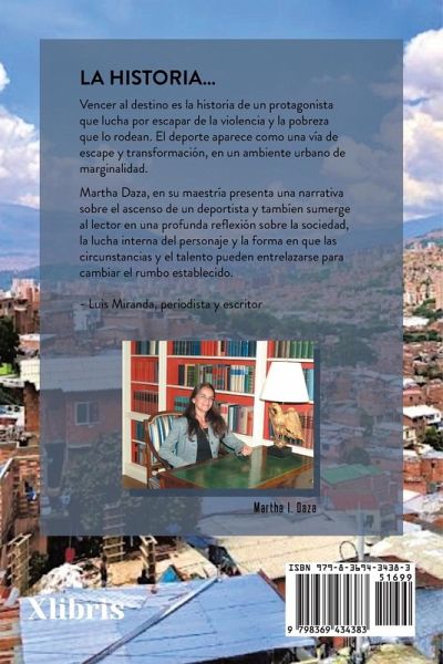 LA HISTORIA... Vencer al destino es la historia de un protagonista que lucha por escapar de la violencia y la pobreza que lo rodean. El deporte aparece como una vía de escape y transformación, en un ambiente urbano de marginalidad. Martha Daza, en su maestría presenta una narrativa sobre el ascenso de un deportista y tambíen sumerge al lector en una profunda reflexión sobre la sociedad, la lucha interna del personaje y la forma en que las circunstancias y el talento pueden entrelazarse para cambiar el rumbo establecido. - Luis Miranda, periodista y escritor