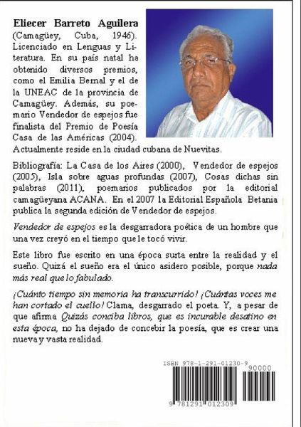 Vendedor de espejos es la desgarradora poética de un hombre que una vez creyó en el tiempo que le tocó vivir. Este libro fue escrito en una época surta entre la realidad y el sueño. Quizá el sueño era el único asidero posible, porque nada más real que lo fabulado. ¡Cuánto tiempo sin memoria ha transcurrido! ¡Cuántas voces me han cortado el cuello! Clama, desgarrado el poeta. Y, a pesar de que afirma Quizás conciba libros, que es incurable desatino en esta época, no ha dejado de concebir la poesía, que es crear una nueva y vasta realidad.