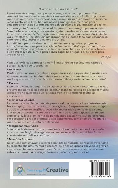 Essa é uma das perguntas que mais ouço, e é muito importante. Quero compartilhar meu conhecimento e meu método com você. Não importa se você é novato, ou se tem experiência em acessar as dimensões por meio de Jesus Cristo, esse livro lhe trará novos paradigmas e métodos para o amadurecimento de sua jornada de participação em Seu maravilhoso reino. A presença de Deus é algo incrível. Se prestarmos atenção podemos reter Seus flashes de revelação na quietude, até que eles se abram para nós com tudo que possuem. A Meditação nos ensina a aumentar a consciência de Sua voz e revelação. Registrar em um diário treina o nosso foco para reconhecer, entender e reter esses momentos especiais. Este diário é propositalmente estruturado com sugestões, perguntas, instruções e métodos para te ajudar a "ver no espírito" e participar do Seu reino. A prática de registrar no diário tem sido chave para destravar tudo o que o Pai tem para mim, e para o meu papel na criação. Sei que será para você também. Vendo através das paredes contém 3 meses de instruções, meditações e perguntas que irão te ajudar a: 1. Recordar.Muitas vezes, nossos encontros e experiências são esquecidos à medida em nos envolvemos nas tarefas diárias. Ao escrever, sua mente revisita o que você experimentou ou viu. Este é o começo de aprender a "ver no espírito". 2. Crescer.Esse diário contém perguntas e sugestões para levá-lo a focar em coisas que provavelmente você não iria perceber. A maneira judaica de aprender muitas vezes envolve questões que forçam a mente a considerar múltiplas perspectivas. 3. Treinar seu cérebroEscrever fisicamente também dá peso e valor ao que você poderia descartar. Por exemplo, talvez ao meditar, no coração você experimente ou sinta algum tipo de movimento angélico. Você não necessariamente sabe seu nome, função ou propósito. Talvez você não possa vê-los, mas apenas sente que algo está lá. Este é um ponto de partida para acessar mais! A perseverança em perceber e prestar atenção a esse sentimento, com o tempo, mostrará a você o que é e o que está acontecendo. 4. Mergulhar mais fundoSomos parte de uma cultura instantânea. Queremos entender tudo e saber tudo em uma fração de segundo, em um relance. Fazer um diário é uma maneira de mergulhar mais fundo. 5. Memória Corporal Os antigos costumavam escrever com tinta perfumada, porque escrever algo fisicamente cria uma memória corporal que fica enraizada em você, e grava o que foi escrito em seu corpo físico. A memória corporal materializa o que antes era ilusório. A revelação torna-se parte de quem você é!