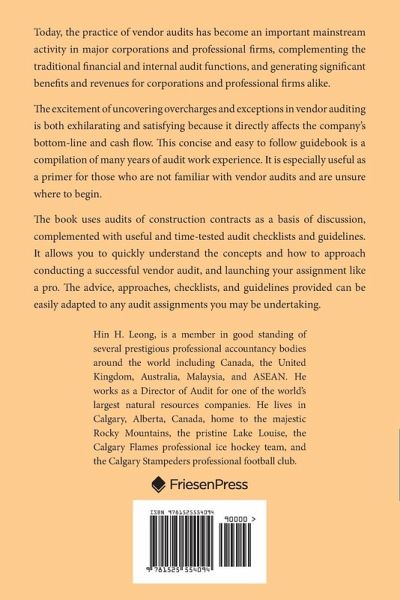 Today, the practice of vendor audits has become an important mainstream activity in major corporations and professional firms, complementing the traditional financial and internal audit functions, and generating significant benefits and revenues for corporations and professional firms alike. The excitement of uncovering overcharges and exceptions in vendor auditing is both exhilarating and satisfying because it directly affects the company's bottom-line and cash flow. This concise and easy to follow guidebook is a compilation of many years of audit work experience. It is especially useful as a primer for those who are not familiar with vendor audits and are unsure where to begin. The book uses audits of construction contracts as a basis of discussion, complemented with useful and time-tested audit checklists and guidelines. It allows you to quickly understand the concepts and how to approach conducting a successful vendor audit, and launching your assignment like a pro. The advice, approaches, checklists, and guidelines provided can be easily adapted to any audit assignments you may be undertaking.