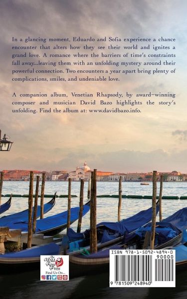 In a glancing moment, Eduardo and Sofia experience a chance encounter that alters how they see their world and ignites a grand love. A romance where the barriers of time's constraints fall away...leaving them with an unfolding mystery around their powerful connection. Two encounters a year apart bring plenty of complications, smiles, and undeniable love. A companion album, Venetian Rhapsody, by award-winning composer and musician David Bazo highlights the story's unfolding. Find the album at: www.davidbazo.info.