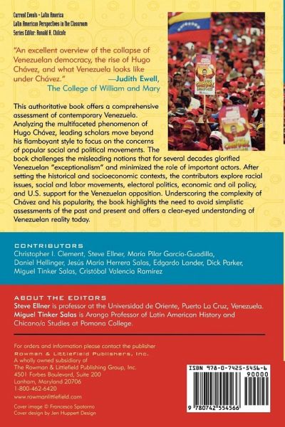 This authoritative book offers a comprehensive assessment of contemporary Venezuela. Analyzing the multifaceted phenomenon of Hugo Chávez, leading scholars move beyond his flamboyant style to focus on the concerns of popular social and political movements. The book challenges the misleading notions that for several decades glorified Venezuelan "exceptionalism" and minimized the role of important actors. After setting the historical and socio-economic contexts, the contributors explore racial issues, social and labor movements, electoral politics, economic and oil policy, and United States support for the Venezuelan opposition. Underscoring the complexity of Chávez and his popularity, the book highlights the need to avoid simplistic assessments of the past and present and offers a clear-eyed understanding of Venezuelan reality today. Contributions by: Christopher I. Clement, Steve Ellner, Maria Pilar García Guadilla, Daniel Hellinger, Jesús María Herrera Salas, Edgardo Lander, Dick Parker, Miguel Tinker Salas, and Cristóbal Valencia Ramírez