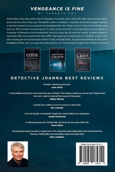 Serial killers only stop when they're stopped. Homicide can't catch the killer because they don't know who he, she or they are. The deaths seem unrelated-a woman drowned, a judge crushed, a teacher bashed and an equestrian strangled. Why these victims? They're normal like you and me. Why murder the good guys? A radio shock-jock with verbal diarrhea is struck dumb. A murderer confesses to the broadcaster and the cases are all over the media. Jo Best is back in Homicide with more boyfriends than stiffs. One lover turns nasty and Jo is shafted. A car crash and missing pet bring heartache. Enter IT whiz, Michael Chan. Jo and Michael head to church for a baptism of fire. Can you spot the killers before Jo? And will she accept that Parisian invitation?