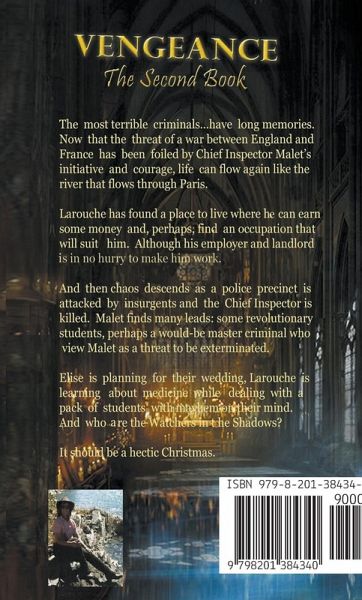 The most terrible criminals…have long memories. Now that the threat of a war between England and France has been foiled by Chief Inspector Malet's initiative and courage, life can flow again like the river that flows through Paris. Malet and Elise are planning their wedding, which will take place near Christmas. Larouche has found a place to live, where he can earn some money and, perhaps, find an occupation that will suit him. Since his employer and landlord is in no hurry to make him work, Larouche has a chance to learn about medicine while dealing with a pack of students with mayhem on their minda. And then chaos descends as a police precinct is attacked by insurgents and its Chief Inspector is killed. Malet finds many leads: some revolutionary students and a would-be master criminal who view Malet as a thread to be exterminated. Suddenly the people that Malet holds dear are being attacked, and it is clear that he is marked for assassination, himself. Elise is planning for their wedding, Malet is dealing with a troupe of bodyguards apparently recruited from the Sureté. …And who are the Watchers in the Shadows? It should be a hectic Christmas. You will love this well-researched Historical adventure, because the mystery intrigues, the romance entices, and the twists keep you turning the pages. Get it now.