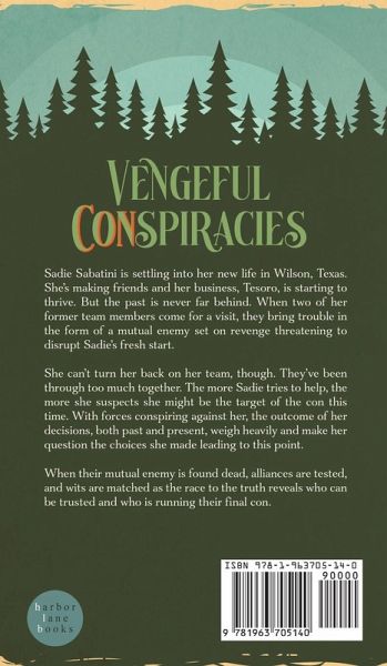 Sadie Sabatini is settling into her new life in Wilson, Texas. She's making friends and her business, Tesoro, is starting to thrive. But the past is never far behind. When two of her former team members come for a visit, they bring trouble in the form of a mutual enemy set on revenge threatening to disrupt Sadie's fresh start. She can't turn her back on her team, though. They've been through too much together. The more Sadie tries to help, the more she suspects she might be the target of the con this time. With forces conspiring against her, the outcome of her decisions, both past and present, weigh heavily and make her question the choices she made leading to this point. When their mutual enemy is found dead, alliances are tested, and wits are matched as the race to the truth reveals who can be trusted and who is running their final con. VENGEFUL CONSPIRACIES is book 2 in the Sadie Sabatini Mystery series by USA Today Bestselling author, Nicole Leiren!