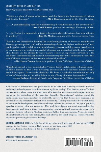 Venice is perceived to be in peril due to rising sea levels, tourism, and modern development. This book is based on interviews with Venetian environmentalists about Venice’s environmental risks, especially regarding the city’s anticipated mobile dams. It offers a ten-point proposal to modernize Venice while preserving its ancient heritage