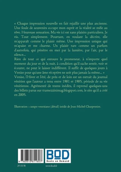 "Venise, l'Hiver et l'été, de près et de loin" est un extrait du journal vénitien que tient l'auteur depuis toujours, agrémenté de textes inédits et de billets parus depuis 2005 sur le site tramezzinimag.blogspot.com