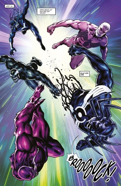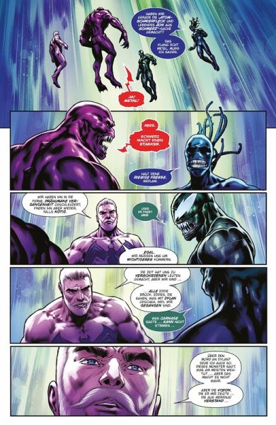 DURCH DIE ZEIT Der König in Schwarz Eddie Brock und sein Sohn Dylan liefern sich einen Krieg um das Schicksal von Venom! Während sie sich in der Gegenwart bekämpfen, reist eine erwachsene Version von Dylan aus einer finsteren Zukunft in die Vergangenheit, um den Lauf des Schicksals zu verändern. "Old Man Dylan" trifft auf einen jungen Spider-Man, aber auch auf Dr. Strange und Loki. Ein Band im Zeichen des Symbionten-Events Venom War und zugleich das große Serienfinale, in Szene gesetzt von Torunn Grønbekk (Carnage), Al Ewing (Venom War), CAFU (Iron Man: Der Eiserne) und Germán Peralta (Moon Knight).ENTHÄLT: VENOM (2021) 35-39FINALAUSGABE!