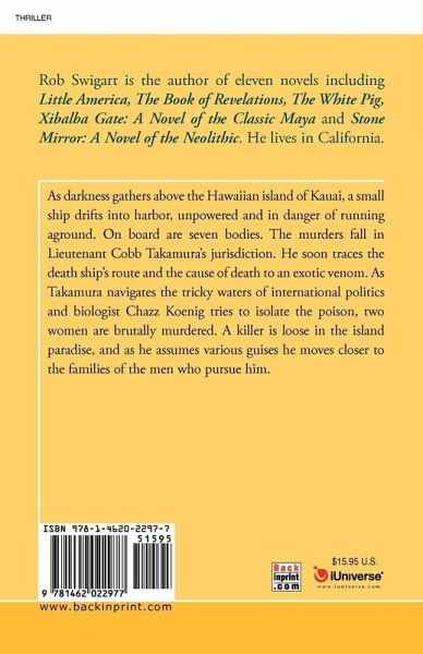 As darkness gathers above the Hawaiian island of Kauai, a small ship drifts into harbor, unpowered and in danger of running aground. On board are seven bodies. The murders fall in Lieutenant Cobb Takamura's jurisdiction. He soon traces the death ship's route and the cause of death to an exotic venom. As Takamura navigates the tricky waters of international politics and biologist Chazz Koenig tries to isolate the poison, two women are brutally murdered. A killer is loose in the island paradise, and as he assumes various guises he moves closer to the families of the men who pursue him.