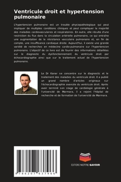 L'hypertension pulmonaire est un trouble physiopathologique qui peut impliquer de multiples conditions cliniques et peut compliquer la majorité des maladies cardiovasculaires et respiratoires. En outre, elle résulte d'une restriction du flux dans la circulation artérielle pulmonaire, ce qui entraîne une augmentation de la résistance vasculaire pulmonaire et, en fin de compte, une insuffisance cardiaque droite. Aujourd'hui, il existe une grande variété de recherches en médecine cardio-pulmonaire sur l'hypertension pulmonaire. L'objectif de ce livre est de fournir des informations détaillées sur le diagnostic du dysfonctionnement du ventricule droit par échocardiographie ainsi que sur le traitement actuel de l'hypertension pulmonaire.