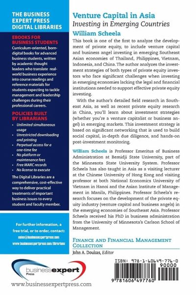 This book is one of the first to analyze the development of private equity, to include venture capital and business angel investing in emerging Southeast Asian economies of Thailand, Philippines, Vietnam, Indonesia, and China. The author analyzes the investment strategies of both types of private equity investors who face significant challenges when investing in emerging economies lacking the legal and financial institutions needed to support effective private equity investing. With the author's detailed field research in Southeast Asia, as well as recent private equity research in China, you'll learn about investment strategies (whether you're a venture capitalist or business angel) in emerging markets. This investment strategy is based on significant networking that is used to build social capital, in-depth due diligence, and hands-on post-investment monitoring.