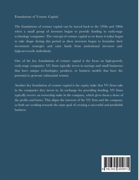 Foundations of Venture Capital The foundations of venture capital can be traced back to the 1950s and 1960s, when a small group of investors began to provide funding to early-stage technology companies. The concept of venture capital as we know it today began to take shape during this period as these investors began to formalize their investment strategies and raise funds from institutional investors and high net-worth individuals. One of the key foundations of venture capital is the focus on high-growth, early-stage companies. VC firms typically invest in startups and small businesses that have unique technologies, products, or business models that have the potential to generate substantial returns. Another key foundation of venture capital is the equity stake that VC firms take in the companies they invest in. In exchange for providing funding, VC firms typically receive an ownership stake in the company, which gives them a share of the profits and losses. This aligns the interests of the VC firm and the company, as both are working towards the same goal of creating a successful and profitable business. Networking and mentorship are also important foundations of venture capital. Venture capital firms often have a strong network of industry contacts and can provide valuable resources such as management expertise, business connections, and strategic guidance to help the companies they invest in succeed. The idea of exits is also a foundation of venture capital. Venture capital firms typically aim for significant returns on their investments, and they typically exit their investments through a sale of the company or an initial public offering (IPO). This can be a significant source of returns for investors and can help to fuel the growth of the venture capital industry. Finally, the foundation of venture capital is the understanding of risk and reward. It's a high-risk, high-reward form of investing. While many venture-backed companies fail, a small number of them can generate substantial returns for investors. Overall, the foundations of venture capital include a focus on high-growth, early-stage companies, an equity stake in the companies, networking, mentorship, exits, and the understanding of risk and reward.