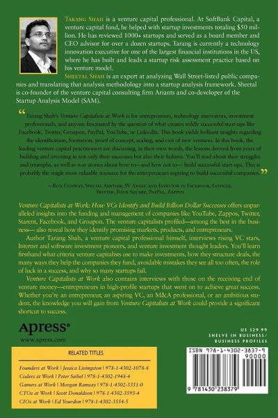 Author Tarang Shah, a venture capital professional himself, interviews rising VC stars, Internet and software investment pioneers, and venture investment thought leaders. You'll learn firsthand what criteria venture capitalists use to make investments, how they structure deals, the many ways they help the companies they fund, avoidable mistakes they see all too often, the role of luck in a success, and why so many startups fail.