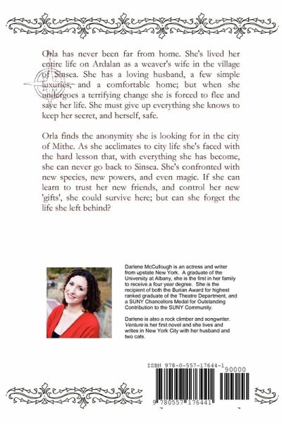 Orla has never been far from home. She's lived her entire life on Ardalan as a weaver's wife in the village of Sinsea. She has a loving husband, a few simple luxuries, and a comfortable home; but when she undergoes a terrifying change she is forced to flee and save her life. She must give up everything she knows to keep her secret, and herself, safe. In Mithe, Orla finds the anonymity she's looking. As she acclimates to city life she's faced with the hard lesson that her life in Sinsea was sheltered and she can never go back. She's confronted with new species, new powers, magic, and finding a way to survive. If she can learn to trust her new friends, and control her new 'gifts', she could survive; but can she forget the life she left behind?