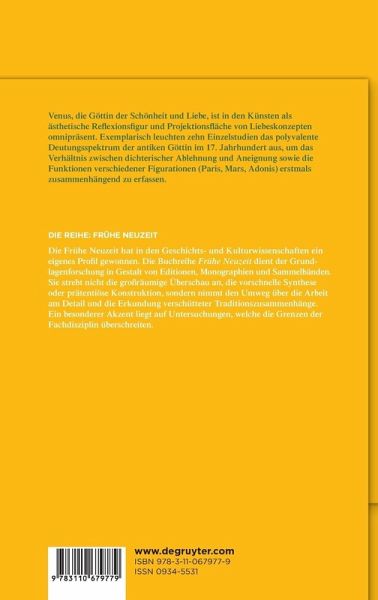 Venus, die Göttin der Schönheit und Liebe, ist in den Künsten als ästhetische Reflexionsfigur und Projektionsfläche von Liebeskonzepten omnipräsent. Exemplarisch leuchten zehn Einzelstudien das polyvalente Deutungsspektrum der antiken Göttin im 17. Jahrhundert aus, um das Verhältnis zwischen dichterischer Ablehnung und Aneignung sowie die Funktionen verschiedener Figurationen (Paris, Mars, Adonis) erstmals zusammenhängend zu erfassen.