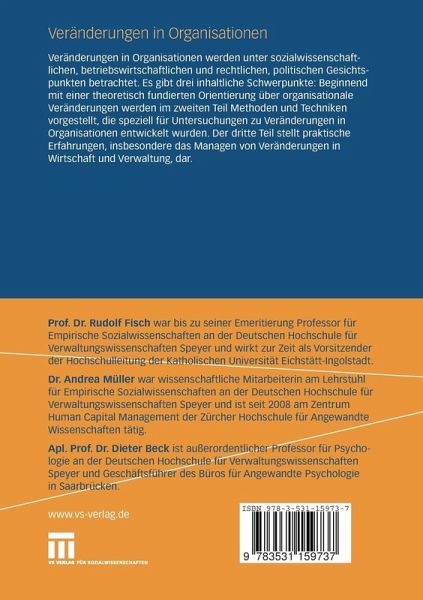 Das Buch betrachtet Veränderungen in Organisationen unter sozialwissenschaftlichen, betriebswirtschaftlichen und rechtlichen, politischen Gesichtspunkten und ist dabei in drei inhaltliche Schwerpunkte unterteilt: beginnend mit einer theoretisch fundierten Orientierung über organisationale Veränderungen werden im zweiten Teil Methoden und Techniken, die speziell für Untersuchungen zu Veränderungen in Organisationen entwickelt wurden, vorgestellt. Der dritte Abschnitt stellt praktische Erfahrungen, insbesondere das Managen von Veränderungen in Wirtschaft und Verwaltung, dar.
