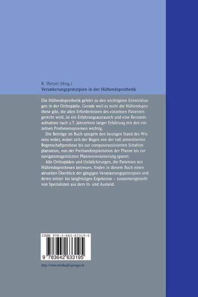 Die Hüftendoprothetik gehört zu den wichtigsten Entwicklungen in der Orthopädie. Gerade weil es nicht die Hüftendoprothese gibt, die allen Erfordernissen des einzelnen Patienten gerecht wird, ist ein Erfahrungsaustausch und eine Bestandsaufnahme nach z.T. Jahrzehnte langer Erfahrung mit den einzelnen Prothesensystemen wichtig. Die Beiträge im Buch spiegeln den heutigen Stand des Wissens wider, wobei sich der Bogen von der voll zementierten Bogenschaftprothese bis zur computerassistierten Schaftimplantation, von der Freihandimplantation der Pfanne bis zu navigationsgestützen Pfannenverankerung spannt. Alle Orthopäden und Unfallchirurgen, die Patienten mit Hüftendoprothesen betreuen, finden in diesem Buch einen aktuellen Überblick der gängigen Verankerungsprinzipien und deren mittel- bis langfristigen Ergebnisse - zusammengestellt von Spezialisten aus dem In- und Ausland.