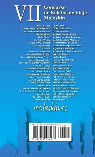 La séptima edición del Concurso de relatos de viaje Moleskin, patrocinado por Ediciones del Viento, ha supuesto un gran salto cualitativo y cuantitativo con respecto a las seis anteriores gracias a la consolidación de la categoría de microrrelatos. Un total de 400 obras, 212 relatos y 189 microrrelatos, de 170 autores provenientes de 16 países diferentes, casi todos latinoamericanos, pero con aportaciones desde países tan distantes como USA, Argentina o Australia. Comienza pues una ruta fascinante que nos llevará por la geografía de Marruecos, haremos un viaje literario por un vagón de metro, navegaremos las aguas del Orinoco, caminaremos por la India, disfrutaremos de las delicias turcas, conoceremos la doble vida de Albania, seguiremos las andanzas de un mosquito por Rotterdam, y, en suma, recorreremos el mundo a través de las palabras.