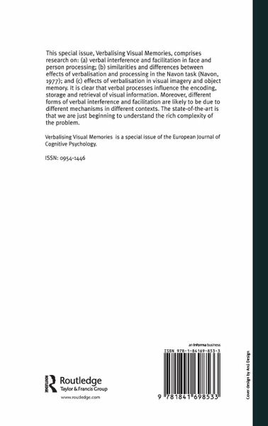 This special issue, Verbalising Visual Memories, comprises research on: (a) verbal interference and facilitation in face and person processing; (b) similarities and differences between effects of verbalisation and processing in the Navon task (Navon, 1977); and (c) effects of verbalisation in visual imagery and object memory. It is clear that verbal processes influence the encoding, storage and retrieval of visual information. Moreover, different forms of verbal interference and facilitation are likely to be due to different mechanisms in different contexts. The state-of-the-art is that we are just beginning to understand the rich complexity of the problem.