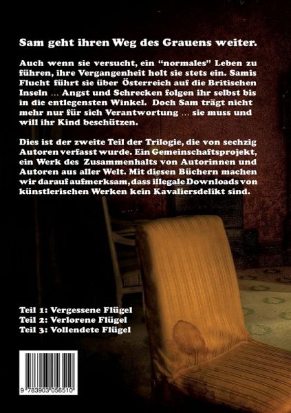 Sam geht ihren Weg des Grauens weiter. Auch wenn sie versucht, ein ¿normales¿ Leben zu führen, ihre Vergangenheit holt sie stets ein. Samis Flucht führt sie über Österreich auf die Britischen Inseln ¿ Angst und Schrecken folgen ihr selbst bis in die entlegensten Winkel. Doch Sam trägt nicht mehr nur für sich Verantwortung ¿ sie muss und will ihr Kind beschützen. Dies ist der zweite Teil der Trilogie, die von sechzig Autoren verfasst wurde. Ein Gemeinschaftsprojekt, ein Werk des Zusammenhalts von Autorinnen und Autoren aus aller Welt. Mit diesen Büchern machen wir darauf aufmerksam, dass illegale Downloads von künstlerischen Werken kein Kavaliersdelikt sind.
