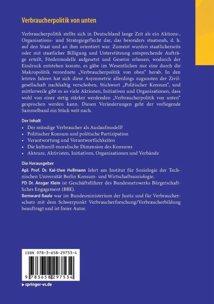 Verbraucherpolitik wurde in Deutschland seit ihrem Bestehen in den 1950er Jahren vorwiegend als ein Aktions- und Maßnahmenbündel verstanden und betrieben, das in erster Linie staatlicherseits initiiert und institutionalisiert wurde. Oftmals auch wurden von Staats wegen entsprechende Aufträge erteilt und Fördermodelle aufgesetzt, wodurch ein Erscheinungsbild entstand, als ob man es im Grunde nur mit einer durch die Makropolitik verordneten 'Verbraucherpolitik von oben' herab zu tun hätte. Nicht, dass in diesen zurückliegenden Jahrzehnten nicht auch immer wieder Versuche unternommen worden wären, verbraucherpolitische Anstöße aus der Mitte der Zivilgesellschaft - oft in Gestalt kleiner Bürgerinitiativen - zu geben. Und gerade in den letzten Jahren sind einige neue Verbraucherorganisationen entstanden, die ungleich basisnäher operieren. Dennoch scheint sich bei den großen, regierungsnahen 'Playern' im Feld, die schon jahrzehntelang im 'Geschäft' sind, von der regierungsinternen Verbraucherpolitik ganz zu schweigen, der Eindruck festgesetzt zu haben, Verbraucherpolitik betreffe ein Politikfeld, das im Wesentlichen durch eine Kollaboration von Staat einerseits, sämtliche Verbraucher und Verbraucherinnen gleichermaßen vertretenden Verbraucherschutzorganisationen andererseits bestellt wird, während die vielen kleinen Verbraucherinitiativen, von einzelnen engagierten Verbrauchern oder Verbraucherinnen gar nicht erst angefangen, demgegenüber regelmäßig ins Hintertreffen geraten. Diese Perspektive bezieht sich größtenteils auf die Sicht auf und aus dem Zentrum der Politik heraus. Diesem institutionell vorherrschenden Eindruck, es gäbe im Prinzip nur 'Verbraucherpolitik von oben', die wirklich schlag- und durchsetzungsfähig sei, soll mit diesem Band ein Stück weit entgegengewirkt werden.