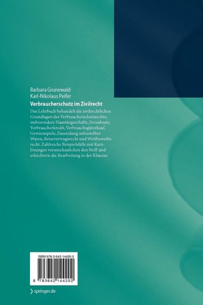 Das Lehrbuch behandelt die zivilrechtlichen Grundlagen des Verbraucherschutzrechts, insbesondere Haustürgeschäfte, Fernabsatz, Verbraucherkredit, Verbrauchsgüterkauf, Gewinnspiele, Zusendung unbestellter Waren, Reisevertragsrecht und Wettbewerbsrecht. Zahlreiche Beispielsfälle mit Kurzlösungen veranschaulichen den Stoff und erleichtern die Bearbeitung in der Klausur.