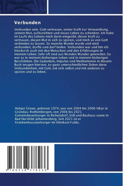 Verbunden sein. Gott vertrauen, seiner Kraft zur Verwandlung, seinem Mut, aufzurichten und neues Leben zu schenken. Ich habe im Laufe des Lebens mich darin eingeübt, dieser Kraft zu vertrauen, diesen Mut in sich zu spüren, und mich so von Gott verbinden zu lassen. So manche Wunde wurde und wird verbunden, durfte und darf heilen. Verbunden war und bin ich hierdurch auch mit den Menschen und den Erfahrungen in meinem Leben. Sehr oft sind aus Wunden Wunder geworden. So war es in meinem bisherigen Leben und in meinem bisherigen Berufsleben. Die Gedanken, Impulse und Meditationen in diesem Buch zeugen hiervon, zu ganz unterschiedlichen Zeiten diese Verbundenheit, mit Gott, mit sich selbst und mit anderen zu spüren und zu leben.