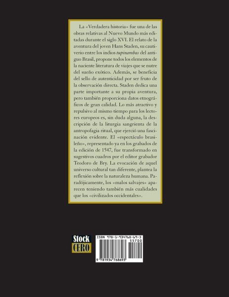 The True Story and Description of a Country of Naked, Ferocious and Anthopophage Savages Situated in the New World America was one of the most published books about the New World during the XVI Century. The story of young Hans Staden's adventure, his captivity among the tupinamba tribe in ancient Brazil, contains all the elements of the then emerging travel literature that nurtured the old world's dreams about the exotic. And better yet, it benefits from its own authenticity by stemming from the author's direct observation. Staden writes about his adventure, but while doing so he also offers first hand ethnographical data of great value. The most attractive, while at the same time most repulsive, for the European readers is, undoubtedly, the description of the blood soaked anthropophagic rituals, that exerted a visible fascination on the civilized audience. The Brazilian Spectacle, depicted in the wood etchings of the 1547 edition, was transformed into full color pictures by the engraver editor Theodore de Bry. The evoking of such a different cultural universe makes one ponder about the paradox of human nature: sometimes the evil savages appear as having more human qualities that the civilized westerners. In this full color edition prof. Jean-Paul Duviols compares the Staden's first edition wood etchings with the later stylized full color depictions by De Bry, a comparison that highlights the interpretation the western world gave to the base information conveyed by Staden.