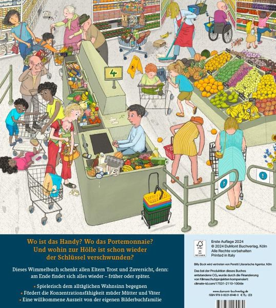 Wo ist das Handy? Wo die Brille? Und wer zur Hölle hat schon wieder den Schlüssel versteckt? Inmitten von Puppen-Teeparty, Domino-Parcours, Wäschebergen und Geschrei kann die Suche nach den wenigen wirklich essenziellen Dingen im Leben als Eltern zur ungeliebten Routine und zum zusätzlichen Stresstest werden. Die gute Nachricht: Fast alles, was im alltäglichen Familienchaos verschwindet, taucht - früher oder später - wieder auf, wie Billy Bock mit ihren herrlich ehrlichen Wimmelbildern vor Augen führt. Schonungslos und mit viel Liebe zum Detail erzählt sie von den Höhen und Tiefen des Elterndaseins und zeigt, dass alle Mütter und Väter ähnliche Herausforderungen zu meistern haben. Einfach mal zurücklehnen und gelassen über den ganz normalen Wahnsinn schmunzeln.