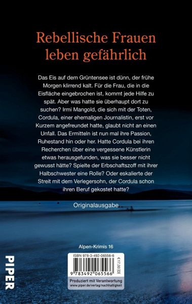 Das Eis auf dem Grüntensee ist dünn, der frühe Morgen klirrend kalt. Für die Frau, die in die Eisfläche eingebrochen ist, kommt jede Hilfe zu spät. Aber was hatte die ehemalige Journalistin überhaupt hier zu suchen? Irmi Mangold, die sich mit der Toten, Cordula, erst vor Kurzem bei einem Skikurs angefreundet hatte, will nicht an einen Unfall glauben. Das Ermitteln ist nun mal ihre Passion, die Sache mit dem Ruhestand hatte sie sich viel leichter vorgestellt. Cordula recherchierte über das tragische Schicksal einer vergessenen Künstlerin. Hatte sie etwas Brisantes herausgefunden, was sie besser nicht gewusst hätte? Spielte der Erbschaftszoff mit ihrer Halbschwester eine Rolle? Oder eskalierte ein schwelender Streit mit dem Verlegerssohn, der Cordula schon ihren Beruf gekostet hatte?